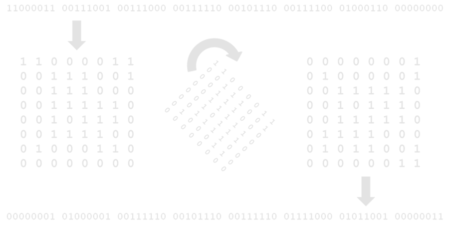 However, we see the magic of this map when the hash is partially decomposed to pairs (e.g. 0xC3) or fully decomposed into binary (e.g. 011010…). Since the hash is computed from a square grid of known size, we can perform matrix transformations, or perhaps more easily, slices on the binary string.