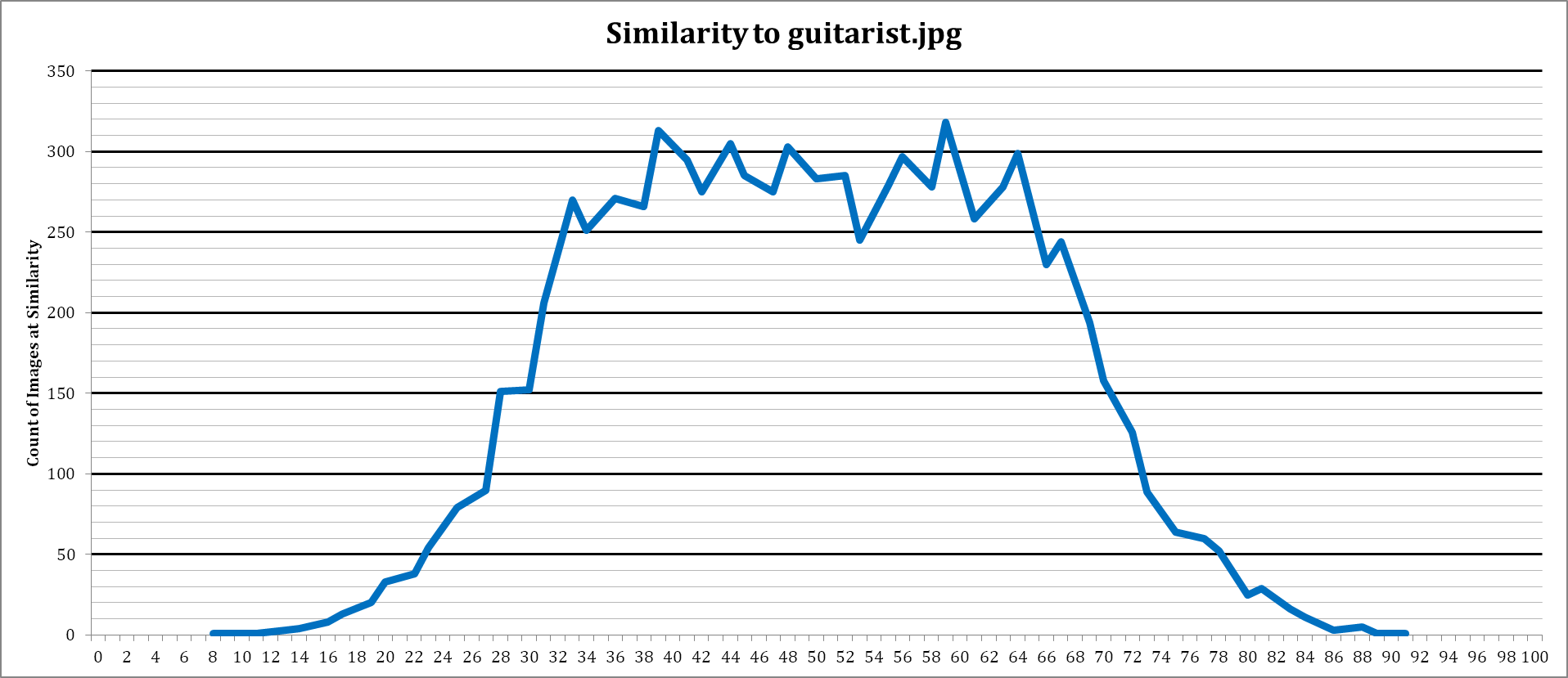 For reference, here are two plots showing image similarity in the dataset to a chosen image.